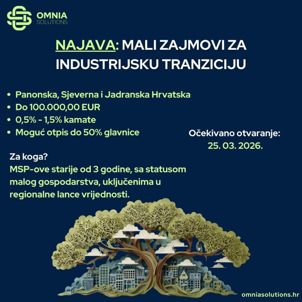 Hrvatska agencija za malo gospodarstvo, inovacije i investicije (HAMAG-BICRO) u suradnji s Ministarstvom regionalnog razvoja i fondova EU i Ministarstvom gospodarstva najavila je skoro otvaranje financijskog instrumenta Mali zajmovi za industrijsku tranziciju. Navedeni financijski instrument se nadovezuje na nacionalnu inicijativu industrijske tranzicije Panonske, Sjeverne i Jadranske Hrvatske koja ima za cilj jačanje regionalne konkurentnosti.