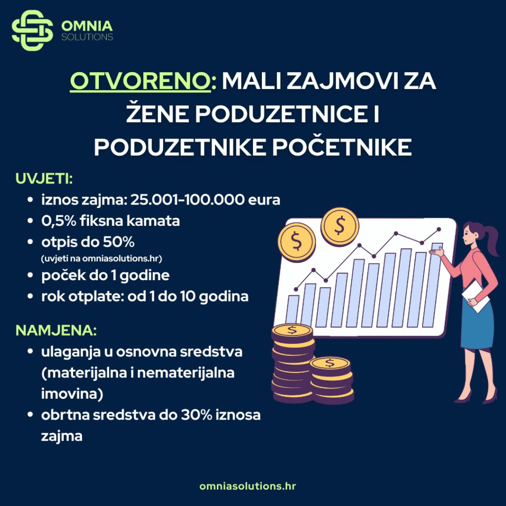 Mali zajmovi za žene poduzetnice i poduzetnike početnike – do 100.000 EUR uz otpis glavnice